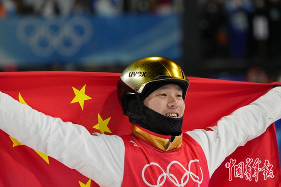 本報河北崇禮2月16日電(中青報·中青網(wǎng)記者 梁璇)滑行、起跳、旋轉(zhuǎn)、落地,32歲的齊廣璞今晚首次在冬奧賽場上順利完成了向后翻騰三周轉(zhuǎn)體1800度,這個難度系數(shù)高達(dá)5.0的動作讓他以129.00分的成績奪得自由式滑雪男子空中技巧冠軍。