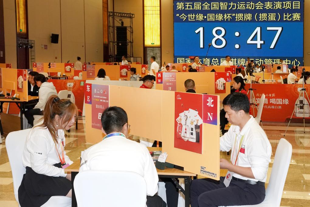 新華社江蘇淮安10月18日電(記者王恒志)第五屆全國(guó)智運(yùn)會(huì)表演項(xiàng)目摜蛋比賽18日在江蘇淮安開賽,來自全國(guó)25支代表隊(duì)的近200名選手將爭(zhēng)奪男雙、女雙和混雙三個(gè)項(xiàng)目的金牌。