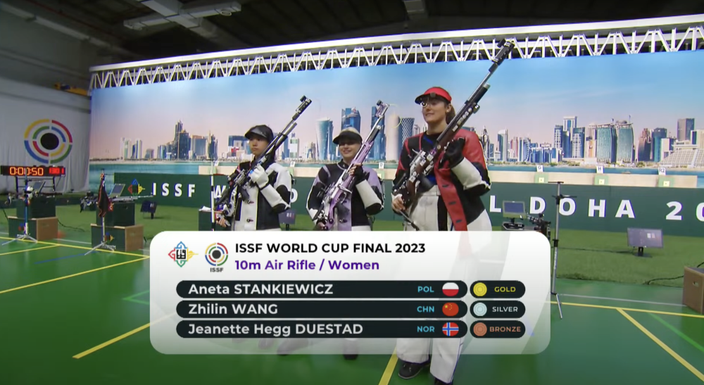 在女子10米氣步槍資格賽中,王芝琳以634.2環(huán)的成績位列榜首,中國隊(duì)韓佳予和黃雨婷分別以第二名和第四名的成績進(jìn)入決賽。決賽中,波蘭選手斯坦凱維奇發(fā)揮神勇,以253.3環(huán)的成績奪冠,王芝琳以0.7環(huán)之差獲得銀牌,挪威選手迪斯塔德拿到銅牌。杭州亞運(yùn)會(huì)冠軍黃雨婷排在第四位,韓佳予位列第六。