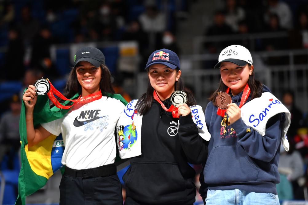男子前三被日本選手包攬。白井空良、根附海龍和東京奧運(yùn)會(huì)冠軍堀米雄斗分別獲得金、銀、銅牌。
