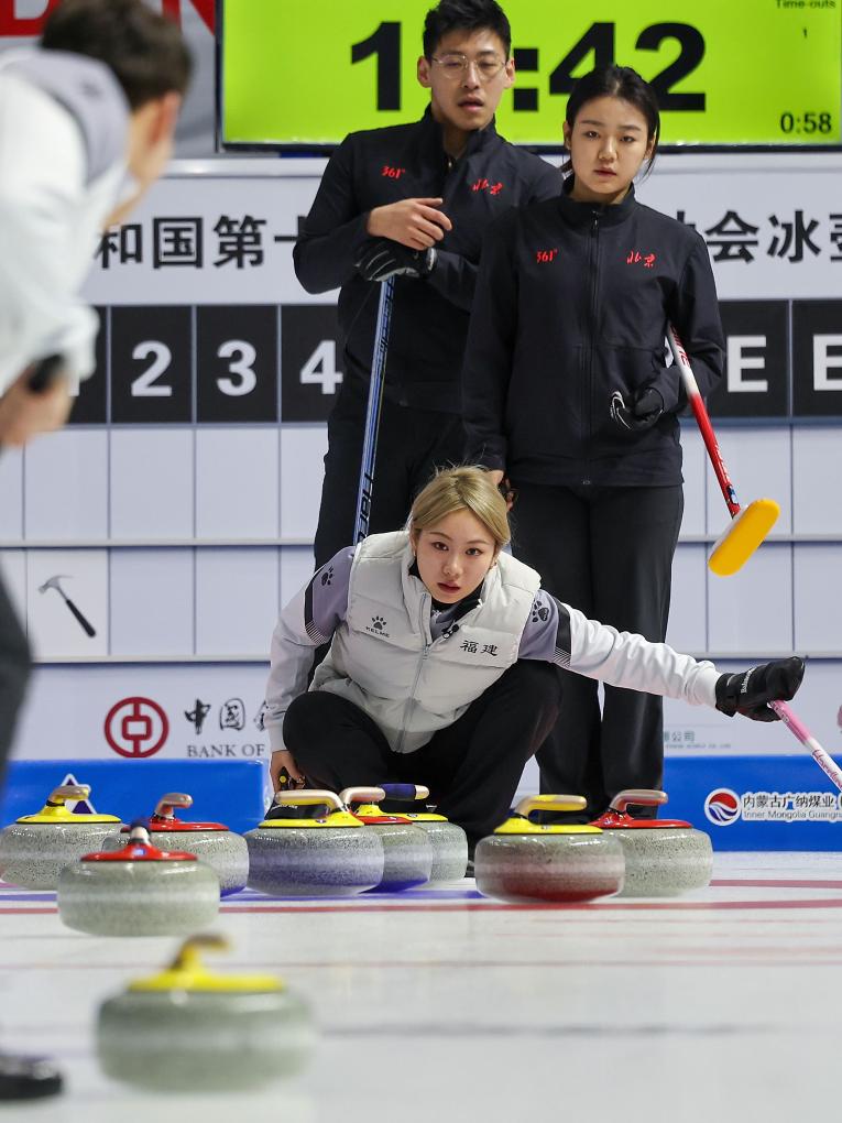 新華社呼和浩特2月19日電(記者趙澤輝、戴錦镕、劉藝淳)19日,在第十四屆全國冬季運動會冰壺(公開組)混雙半決賽中,黑龍江隊以10:2大勝吉林隊,福建隊則通過加局以8:7險勝北京隊,挺進決賽。