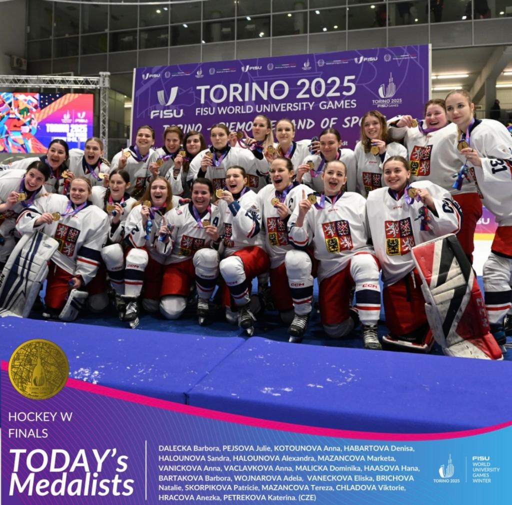 捷克隊獲得第32屆世界大學(xué)生冬季運動會女子冰球冠軍。圖片來自大冬會官方社交賬號