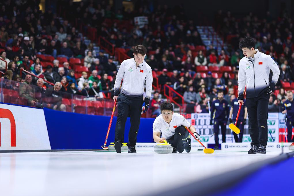 中國隊(duì)在比賽中。圖片來源于世界冰壺聯(lián)合會(huì)官網(wǎng)