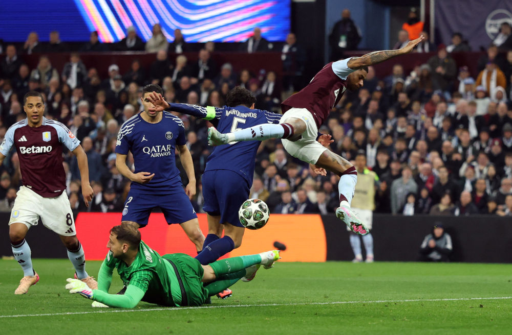 在維拉公園球場(chǎng)的雨戰(zhàn)中,首回合主場(chǎng)3:1勝出的巴黎圣日耳曼先聲奪人。第11分鐘,登貝萊左路突破后橫傳門(mén)前,維拉門(mén)將馬丁內(nèi)斯撲球失誤,阿什拉夫抓住機(jī)會(huì)勁射破網(wǎng)。“大巴黎”在第27分鐘打出高效反擊,登貝萊助攻左后衛(wèi)門(mén)德斯低射命中,將領(lǐng)先優(yōu)勢(shì)擴(kuò)大為2:0。