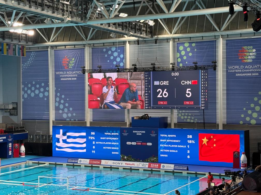 新華社新加坡7月14日電(記者王子江、岳晨星、劉春濤)14日在新加坡舉行的世界游泳錦標(biāo)賽男子水球小組賽中,中國隊(duì)上半場(chǎng)被打了個(gè)0:12,最終以5:26不敵希臘隊(duì),遭遇世錦賽兩連敗。首場(chǎng)比賽中國隊(duì)輸給了克羅地亞隊(duì),比分是6:25。
