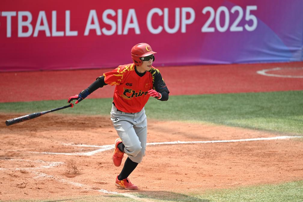 7月16日,中國隊(duì)球員任敏在擊球后跑壘。新華社記者 鄒競一 攝