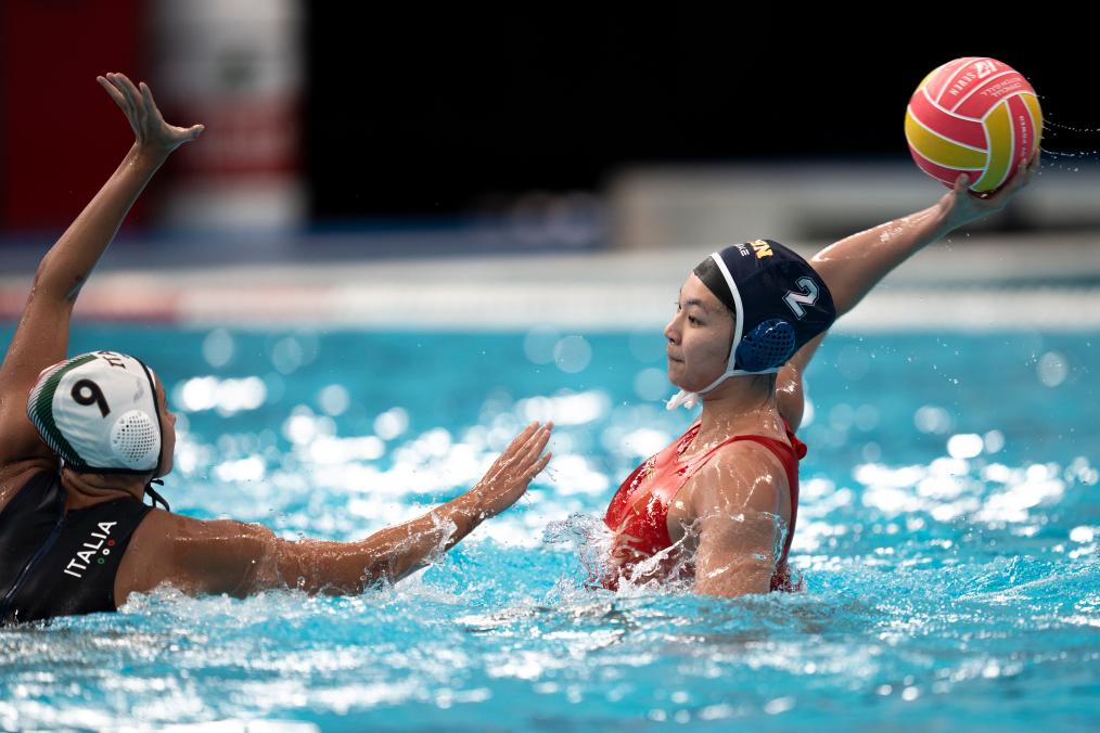 中國隊在交叉賽中遭遇世界排名第七的意大利隊,雙方一開場就開始在水中“肉搏”,比拼防守。第一節(jié)中國隊以0:2落后。次節(jié)中國隊逐漸找到進攻節(jié)奏,由王詩蘊率先破門,此后雙方你來我往,交替得分。張育綿、周尚、張玘鑠的進球幫助中國隊緊咬比分,半場結(jié)束中國隊5:6落后。