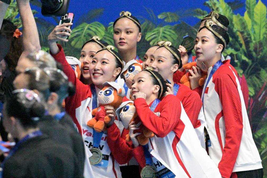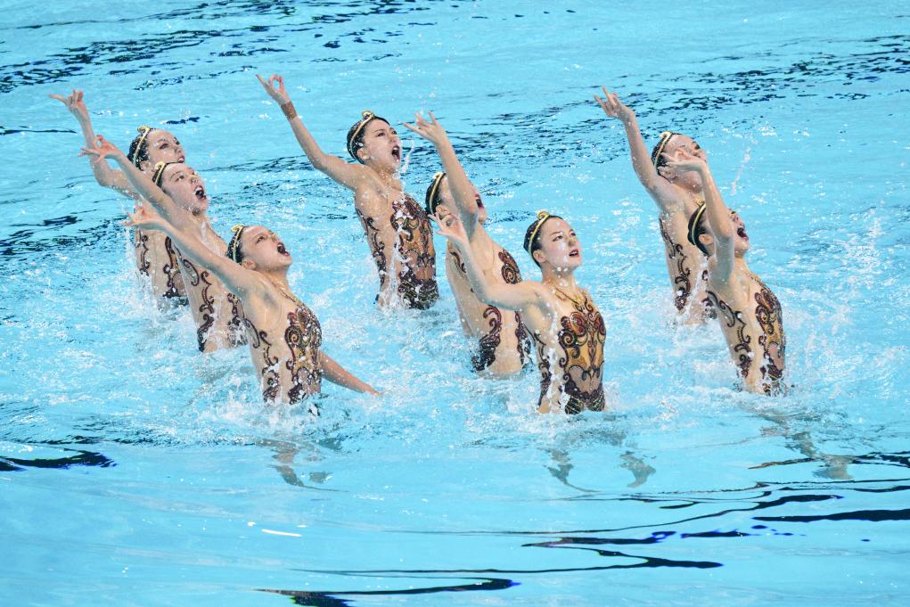 22日晚,2025年游泳世錦賽花游集體技術(shù)自選決賽,預(yù)賽排名第一的中國隊(duì)最后登場。中國隊(duì)沿用了世界杯總決賽時(shí)的“悟空”主題,比賽中姑娘們頭戴金箍,化身“天命人”,伴隨著《黑神話·悟空》的配樂,在水中翩翩起舞。