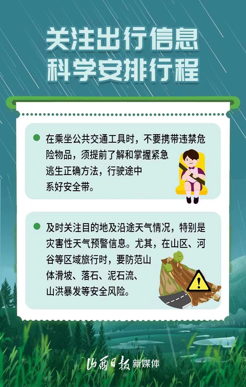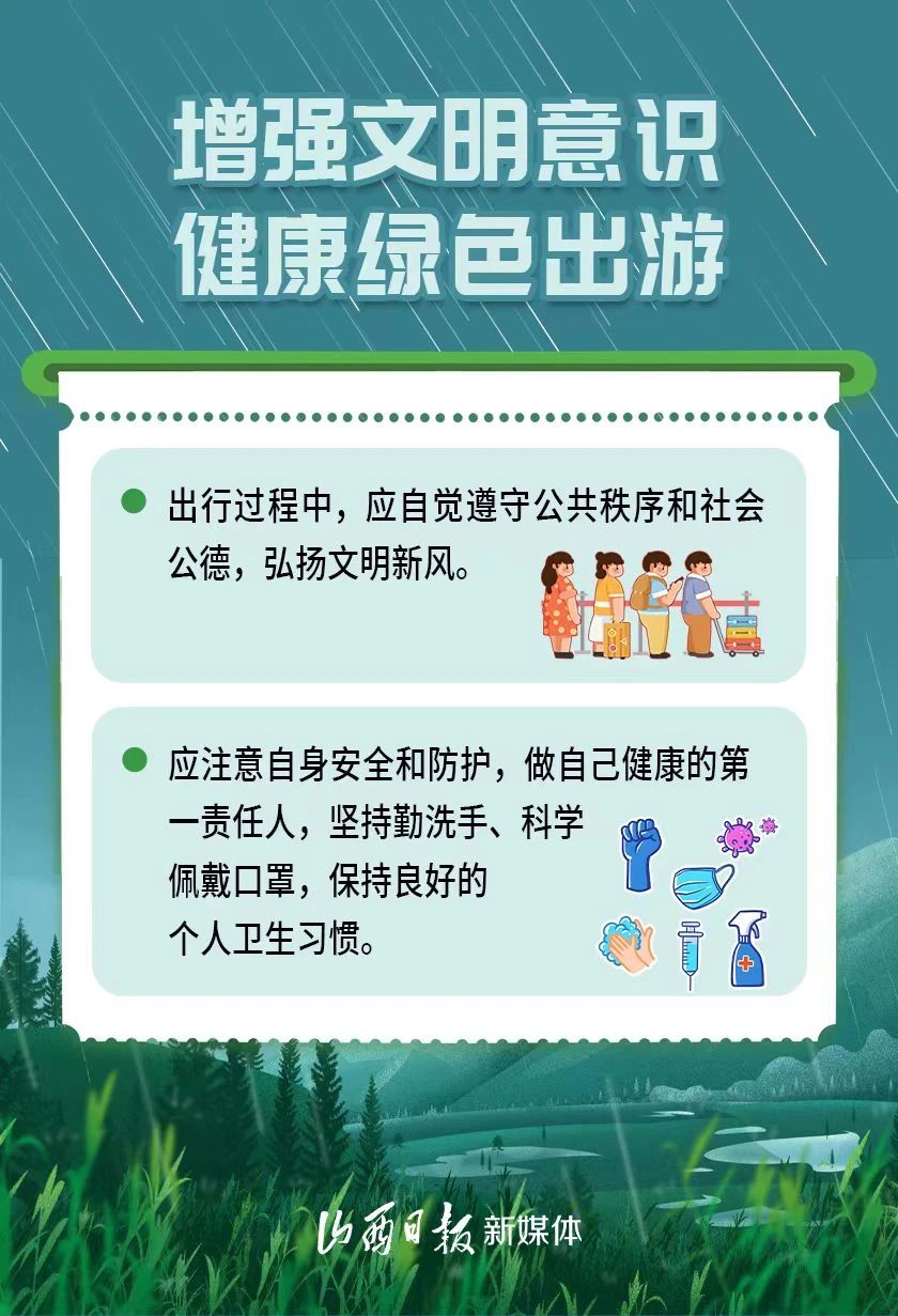 暑假,很多人開始規(guī)劃外出旅游行程。汛期,是強降雨、大風、山洪等惡劣天氣多發(fā)期。暑假+汛期,省文旅廳發(fā)布出游提示,提醒廣大游客密切關注旅游安全,健康平安出游。