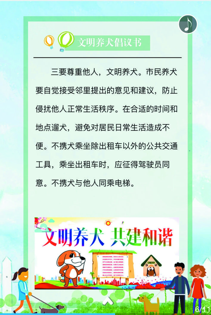 在宣傳活動中,民警深入街道、小區(qū)、商鋪等人員密集場所,在宣傳欄懸掛文明養(yǎng)犬宣傳標(biāo)語、張貼文明養(yǎng)犬倡議書等宣傳資料,向轄區(qū)居民詳細(xì)講解《忻州市養(yǎng)犬管理條例》《文明養(yǎng)犬公告》的具體內(nèi)容,引導(dǎo)養(yǎng)犬群眾主動辦理養(yǎng)犬登記證、出門為犬只佩戴犬牌、定期為犬只注射疫苗,做到依法養(yǎng)犬、文明養(yǎng)犬、衛(wèi)生養(yǎng)犬、健康養(yǎng)犬、安全養(yǎng)犬?;顒又?,該局共懸掛宣傳標(biāo)語50條,張貼文明養(yǎng)犬倡議書500份,向群眾發(fā)放宣傳資料3500人/份。