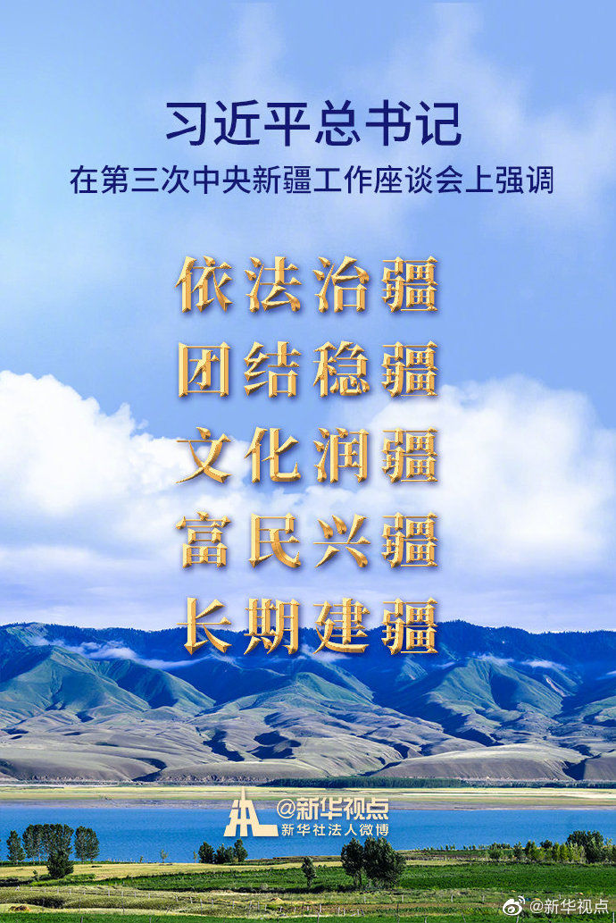 細心的人們不難發(fā)現(xiàn),這次座談會則將有關要求拓展為“依法治疆、團結穩(wěn)疆、文化潤疆、富民興疆、長期建疆”,增加了“文化潤疆”和“富民興疆”。