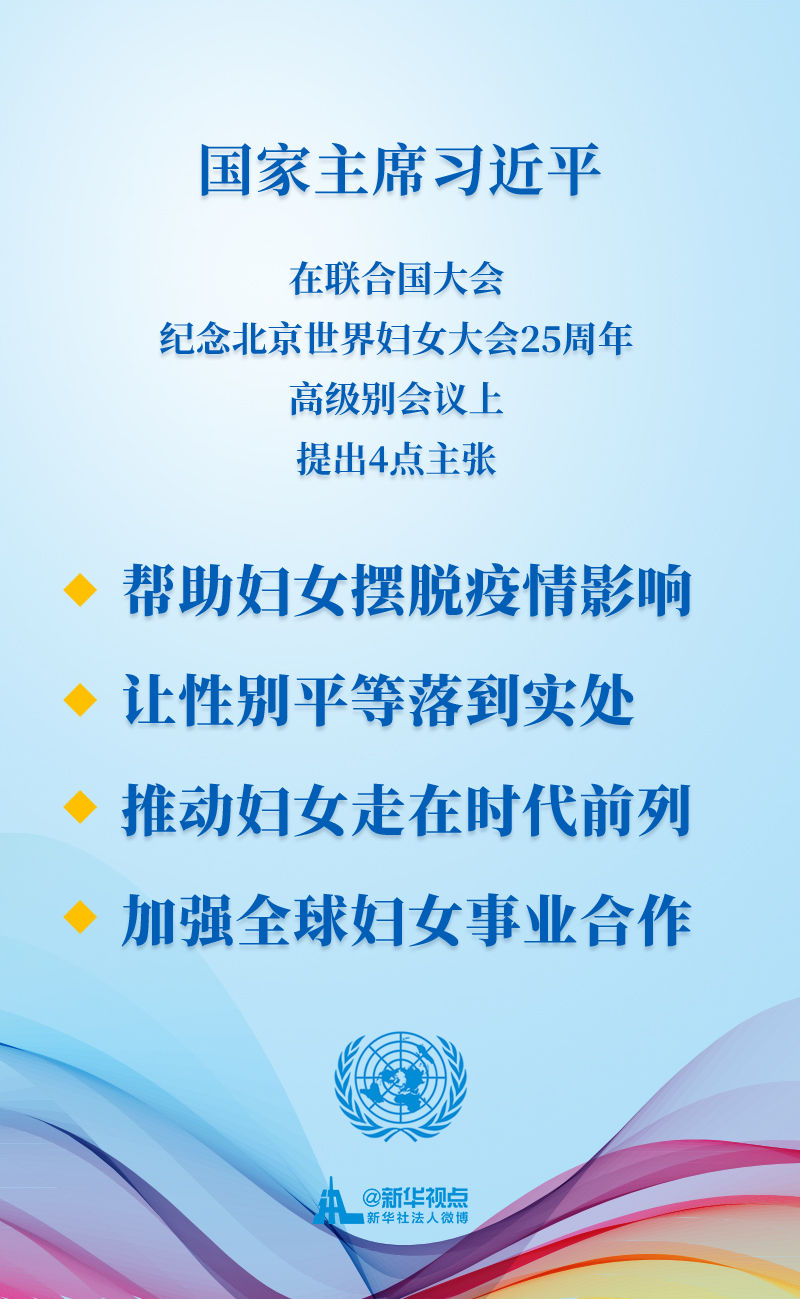 10月1日,聯(lián)合國大會紀(jì)念北京世界婦女大會25周年高級別會議舉行,習(xí)近平主席出席會議并發(fā)表講話。