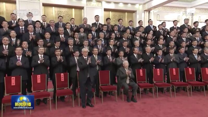 人民大會堂北大廳氣氛喜慶熱烈。上午10時(shí)許,習(xí)近平等黨和國家領(lǐng)導(dǎo)同志步入會場,向參研參試人員代表揮手致意,全場響起經(jīng)久不息的掌聲。習(xí)近平同孫家棟、欒恩杰等親切交流,并同大家合影留念。