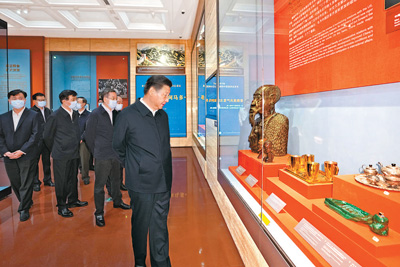 7月16日,中共中央總書(shū)記、國(guó)家主席、中央軍委主席習(xí)近平在中央禮品文物管理中心參觀“友好往來(lái) 命運(yùn)與共——黨和國(guó)家領(lǐng)導(dǎo)人外交活動(dòng)禮品展”。新華社記者 李學(xué)仁 攝