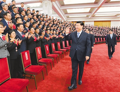 下午3時(shí)30分,習(xí)近平等來(lái)到人民大會(huì)堂北大廳,全場(chǎng)響起熱烈掌聲。習(xí)近平等向代表們揮手致意,同大家親切交流并合影留念。