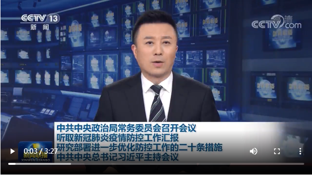 新華社北京11月10日電 中共中央政治局常務(wù)委員會(huì)11月10日召開會(huì)議,聽取新冠肺炎疫情防控工作匯報(bào),研究部署進(jìn)一步優(yōu)化防控工作的二十條措施。中共中央總書記習(xí)近平主持會(huì)議并發(fā)表重要講話。
