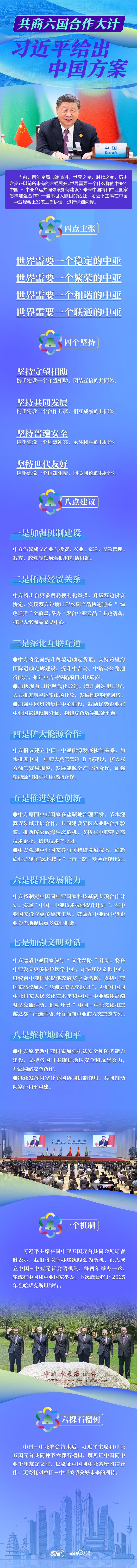 聯(lián)播+“歡迎大家來到西安,出席中國-中亞峰會,共商中國同中亞五國合作大計。”5月19日,習(xí)近平主席在陜西省西安市主持首屆中國-中亞峰會并發(fā)表題為《攜手建設(shè)守望相助、共同發(fā)展、普遍安全、世代友好的中國-中亞命運共同體》的主旨講話,同中亞五國元首簽署了《中國-中亞峰會西安宣言》,并通過《中國-中亞峰會成果清單》。六國元首還共同會見記者、共同種下六棵石榴樹。