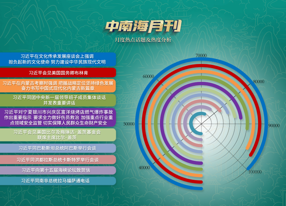 在央視網(wǎng)“智聞”系統(tǒng)提取分析的6月全網(wǎng)時(shí)政新聞熱點(diǎn)中,處處體現(xiàn)著“以古人之規(guī)矩,開自己之生面”的生動實(shí)踐。