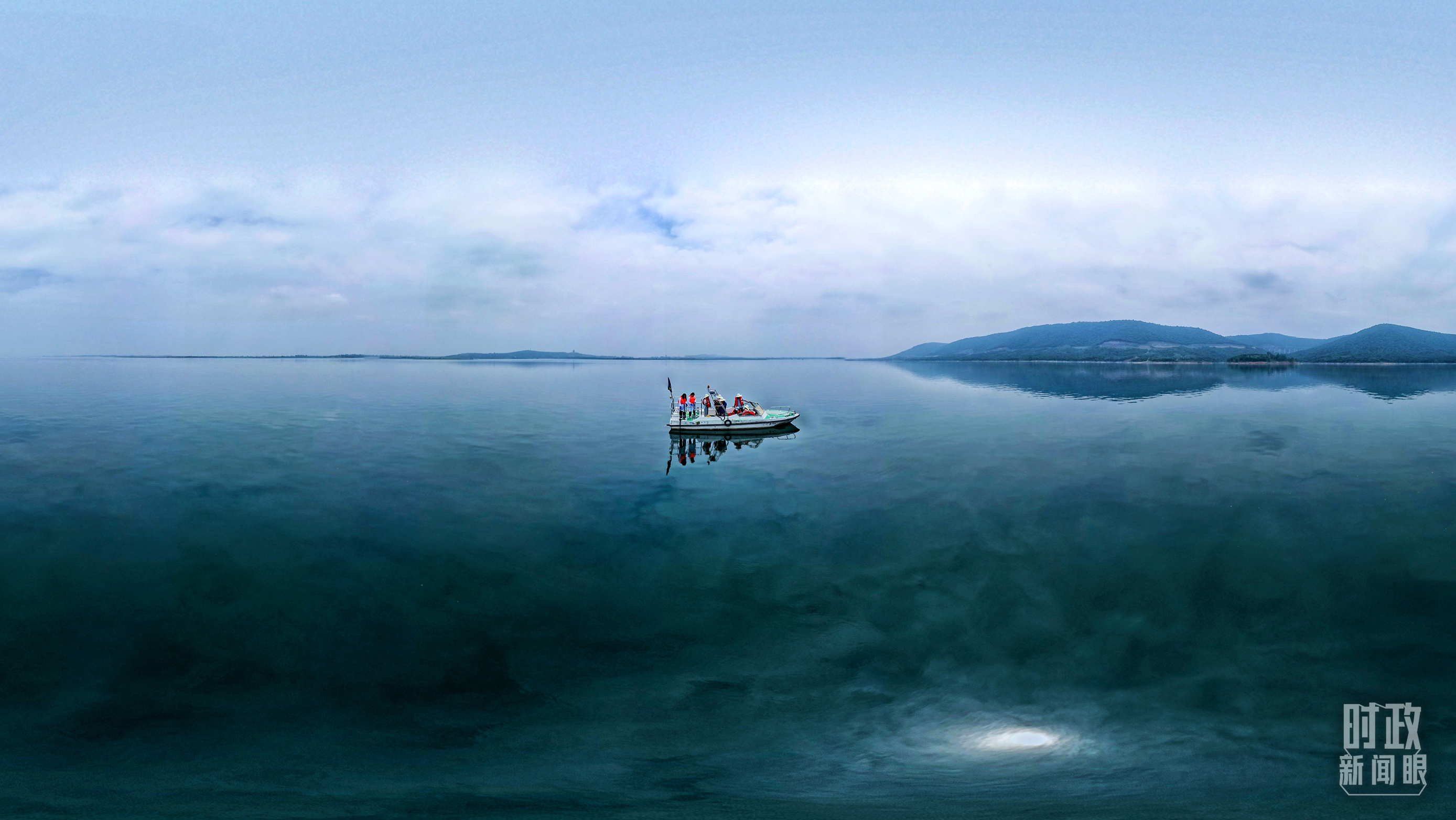 △丹江口水庫,工作人員正在采集水樣。(總臺國廣記者李晉拍攝)
