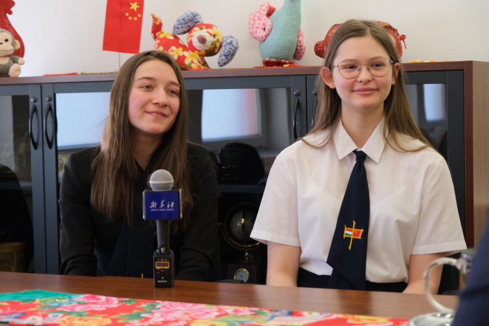 2月7日,在匈牙利首都布達(dá)佩斯,匈中雙語(yǔ)學(xué)校學(xué)生胡靈月(左)和宋智孝接受新華社記者采訪。新華社記者 鄧耀敏 攝