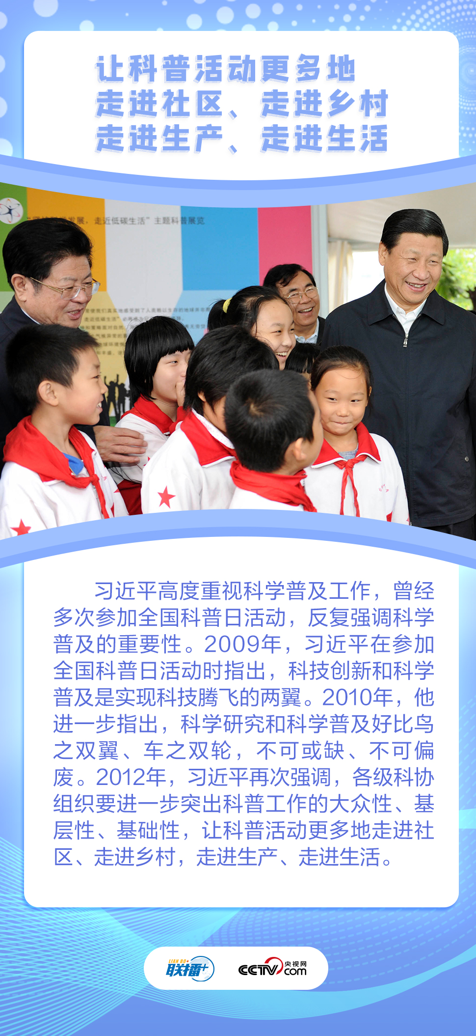 央視網(wǎng)《聯(lián)播+》梳理總書記重視科學(xué)普及工作的故事,與您一起學(xué)習(xí)體會(huì)。