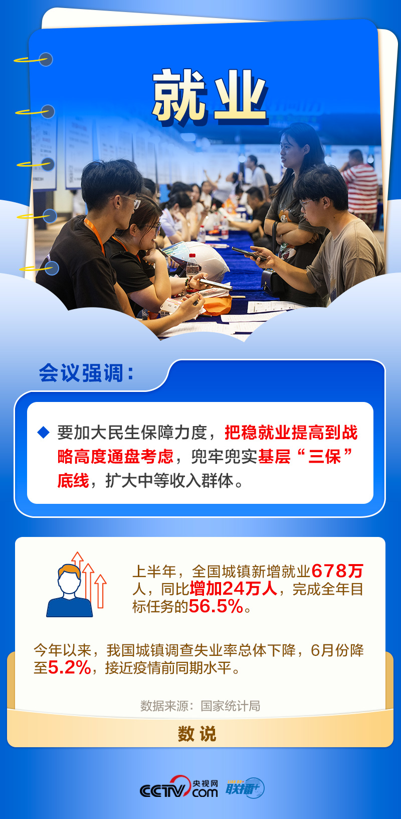 就業(yè)是最大的民生,也是最基本的民生。黨中央一直高度關(guān)注就業(yè)形勢(shì)。今年以來,各地區(qū)各部門多措并舉穩(wěn)存量、擴(kuò)增量、提質(zhì)量、兜底線,落實(shí)落細(xì)就業(yè)優(yōu)先政策,完善公共就業(yè)服務(wù)。
