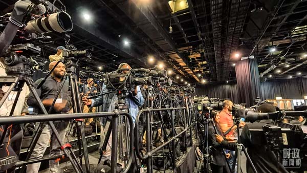 △特別記者會(huì)現(xiàn)場等候的各國記者。(總臺(tái)央視記者韓銳拍攝)