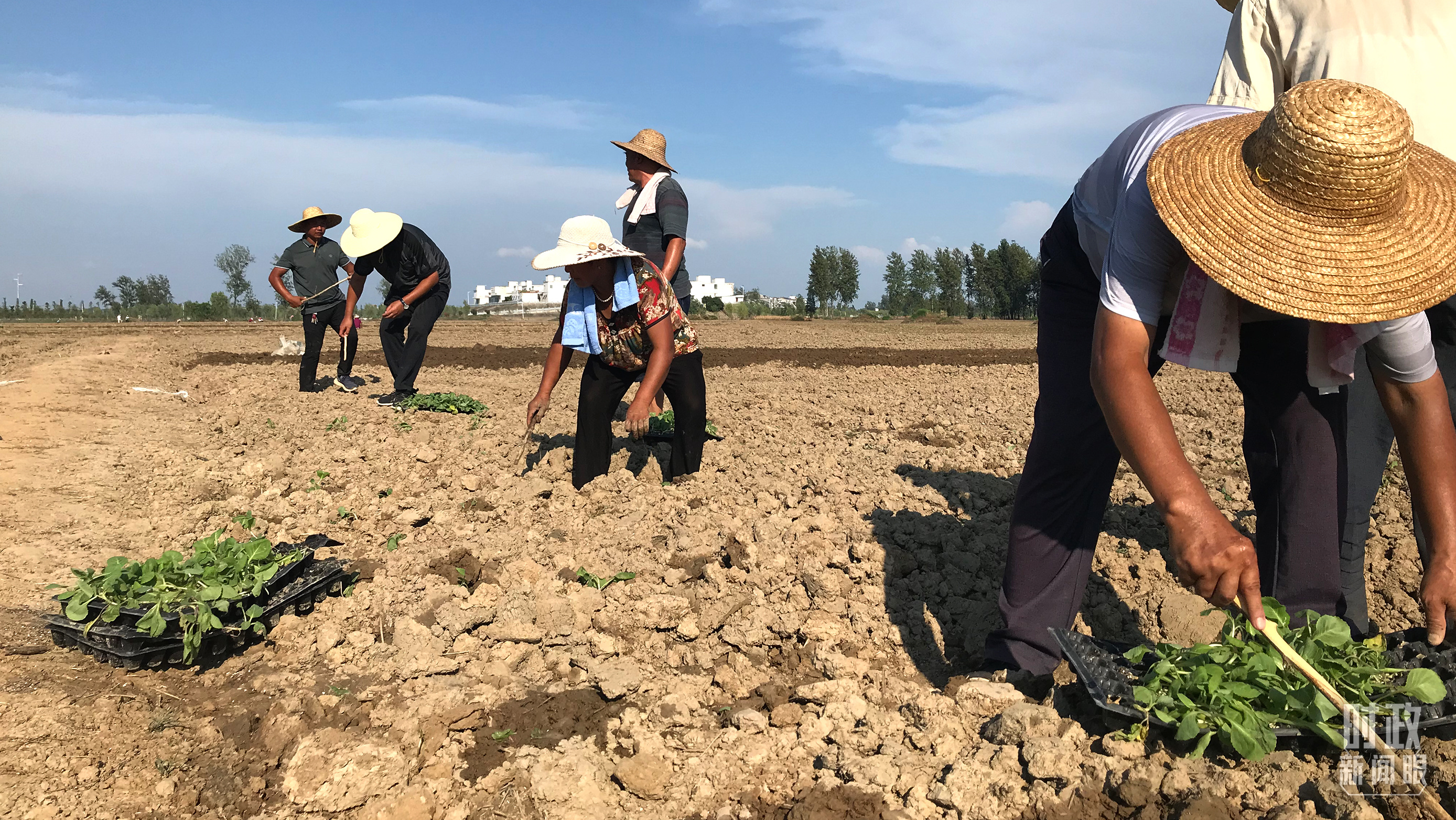 △當(dāng)年洪水退去后,安徽省蒙洼蓄洪區(qū)的村民正在補(bǔ)種蔬菜。(總臺(tái)央視記者石偉明拍攝)