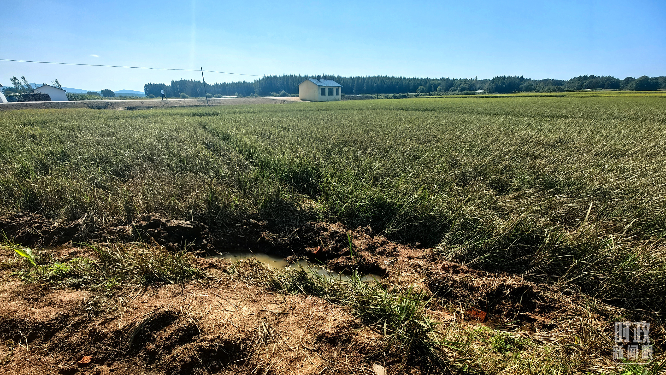 △圖為龍王廟村在洪災(zāi)中受損的農(nóng)田。(總臺(tái)央視記者史偉拍攝)