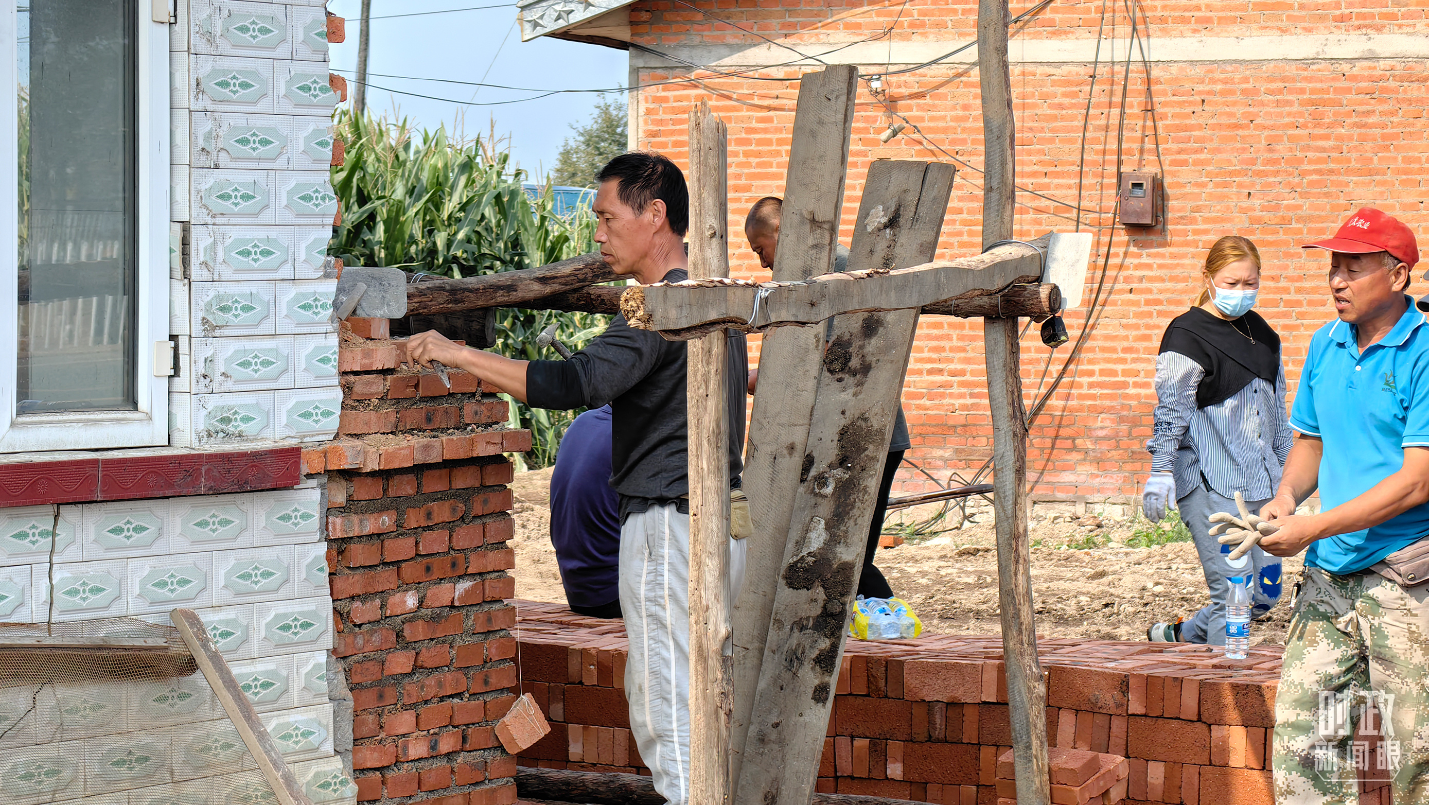 △龍王廟村內(nèi),村民正在修繕在洪水中受損的房屋。(總臺(tái)央廣記者潘毅拍攝)