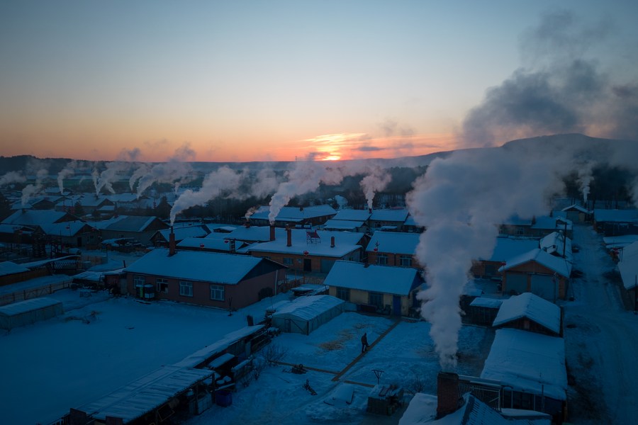 這是1月8日拍攝的漠河市北極村的清晨景象(無人機(jī)照片)。新華社記者 張濤 攝