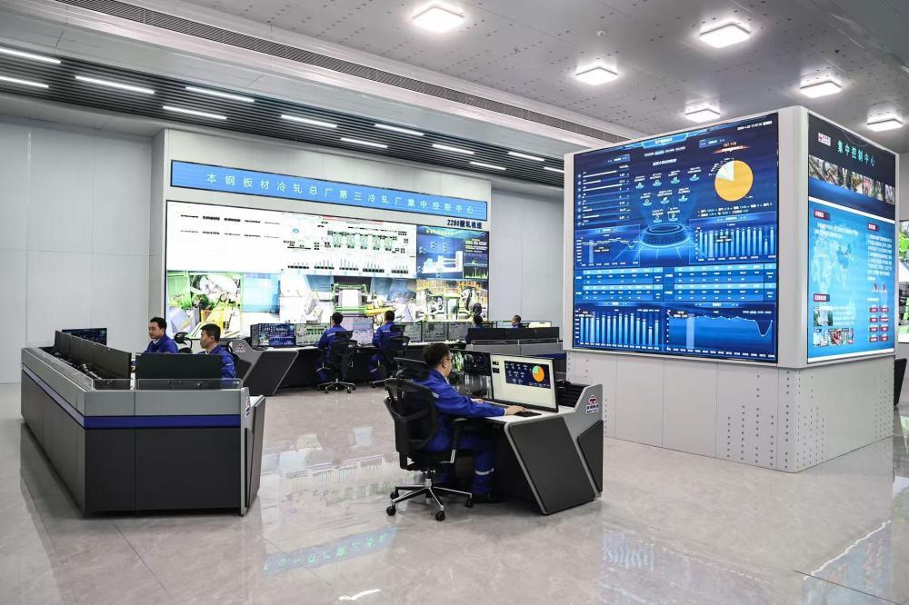 △工作人員在鞍鋼集團所屬的本鋼板材冷軋總廠第三冷軋廠集控中心監(jiān)控設(shè)備運行情況。