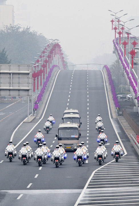 載著英雄的禮賓車隊(duì)從住地出發(fā),在禮賓摩托車隊(duì)護(hù)衛(wèi)下,駛上復(fù)興路,駛?cè)腴L(zhǎng)安街,駛向人民大會(huì)堂。