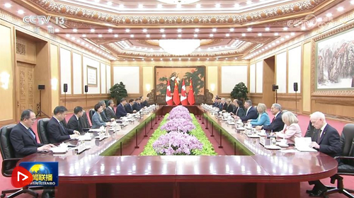 1月16日上午,國家主席習(xí)近平在北京人民大會堂會見來華進(jìn)行正式訪問的加拿大總理卡尼。