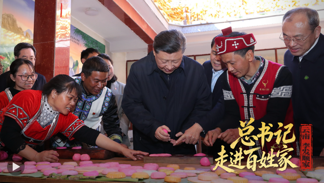 2020年春節(jié)前夕,習(xí)近平總書(shū)記走進(jìn)云南騰沖市清水鄉(xiāng)三家村中寨司莫拉佤族村,同村民李發(fā)順一家制作當(dāng)?shù)毓?jié)日傳統(tǒng)食品大米粑粑。總書(shū)記一連做了兩個(gè),笑著說(shuō):“摁了個(gè)福字,再來(lái)一個(gè)喜字,有福有喜。”