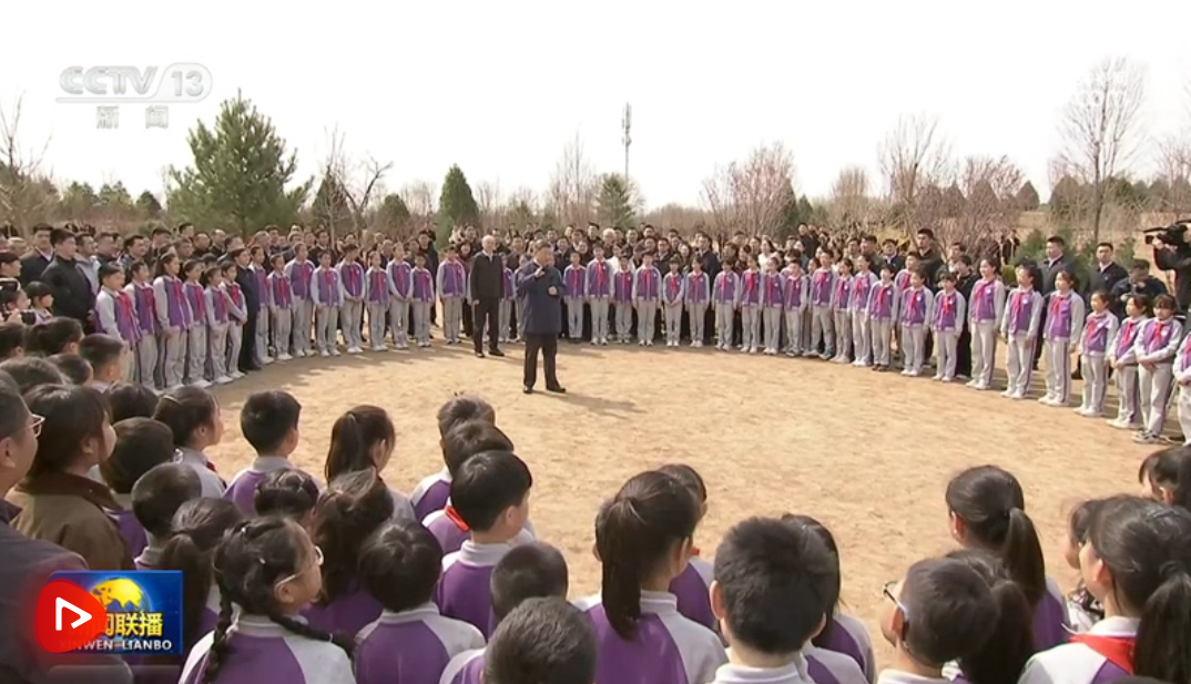3月30日,黨和國(guó)家領(lǐng)導(dǎo)人習(xí)近平、李強(qiáng)、趙樂(lè)際、王滬寧、蔡奇、丁薛祥、李希等來(lái)到北京市昌平區(qū)百善鎮(zhèn)參加首都義務(wù)植樹活動(dòng)。這是習(xí)近平同在場(chǎng)的干部群眾、少先隊(duì)員親切交談。