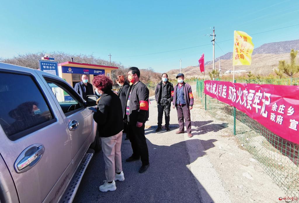 清明節(jié)期間,寧武縣及早部署,提前準(zhǔn)備,周密計(jì)劃,全面落實(shí)森林草原防滅火各項(xiàng)要求,各林場(chǎng)、鄉(xiāng)鎮(zhèn)、村“兩委”人員及護(hù)林員堅(jiān)守崗位,通過站山頭、守墳地、把路口、巡林地,嚴(yán)格火源管控,加大宣傳力度,切實(shí)做到防患于未然。圖為寧武縣余莊鄉(xiāng)小木場(chǎng)村警保合作勸導(dǎo)站嚴(yán)查進(jìn)村進(jìn)山車輛及人員。 (記者張建國(guó)攝)