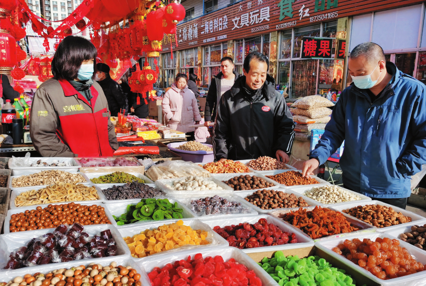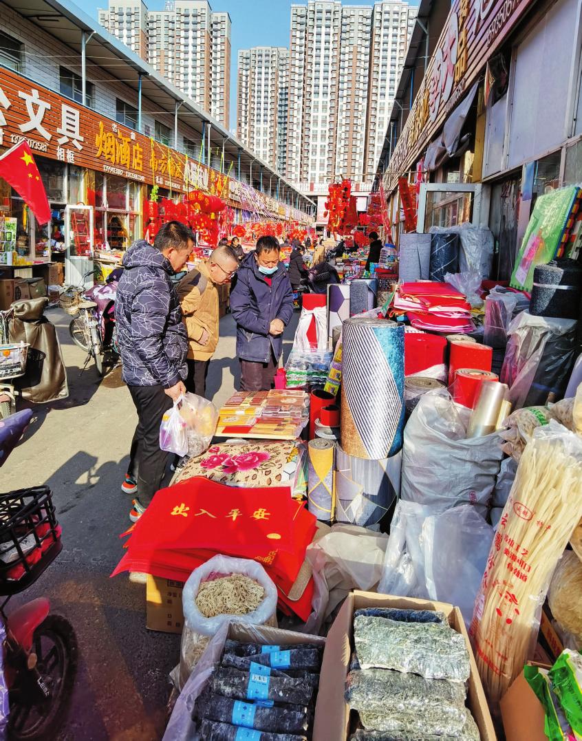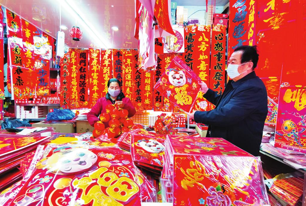 市場(chǎng)內(nèi)各種商品琳瑯滿目,讓人目不暇接。煙酒糖茶、禽、蛋、蔬菜、辦公用品、生活用品,應(yīng)有盡有。一位商戶說(shuō):最近受疫情和網(wǎng)購(gòu)的影響,生意沒(méi)有以前好做了,但市民購(gòu)買(mǎi)熱情依然高漲,進(jìn)入臘月以來(lái),生意一天比一天好了起來(lái)。據(jù)了解,市場(chǎng)內(nèi)各商戶認(rèn)真做好疫情防控工作,及時(shí)對(duì)場(chǎng)地進(jìn)行消殺,努力營(yíng)造一個(gè)安全祥和的購(gòu)物環(huán)境。市場(chǎng)上到處充滿著年味,尤其是紅彤彤的春聯(lián)和喜氣洋洋的福字最為搶眼。(王國(guó)棟 攝影報(bào)道)