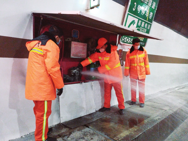 朔州高速公路管理有限公司工作人員正在檢修隧道路燈等設(shè)備。本報記者馬占富攝