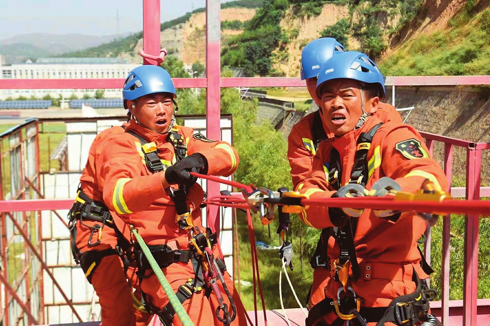 呂梁市消防救援支隊北川河西路特勤站消防員開展繩索救援訓(xùn)練。張文兵攝