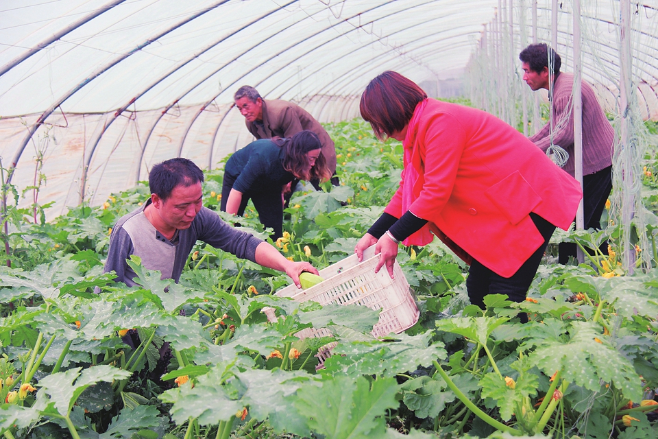 游客正在蔬菜大棚里采摘西葫蘆。本報實習記者劉迎春攝