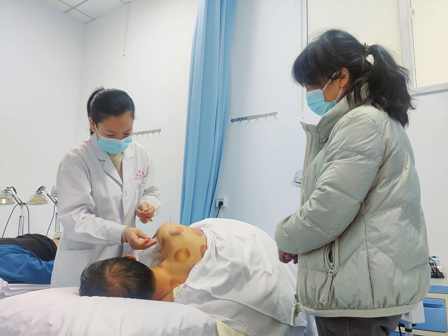 晉城市康復(fù)醫(yī)院中醫(yī)針灸四科主任、中醫(yī)醫(yī)師張潔在為患者施針治療。山西日報記者王天曉攝