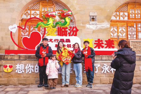 2月11日,在永和縣回家過(guò)年網(wǎng)紅打卡點(diǎn),游客在拍照留念。春節(jié)期間,該縣舉辦了“紅紅火火過(guò)大年 熱熱鬧鬧來(lái)接龍”春節(jié)系列文化活動(dòng),讓游客在歡樂(lè)祥和的氛圍中歡度佳節(jié)。閆銳鵬攝