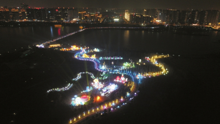 ⑦2月3日,太原晉陽湖桃花島潮趣游園燈會熱鬧非凡。