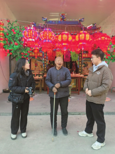 呂梁記者站記者要佳(左)、秦嘉良(右)在柳林縣穆村鎮(zhèn)沙曲村采訪國(guó)家級(jí)非物質(zhì)文化遺產(chǎn)代表性項(xiàng)目——盤(pán)子會(huì)。
