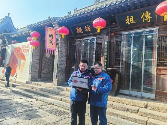 技術(shù)人員在忻州古城測(cè)試網(wǎng)絡(luò)運(yùn)行情況