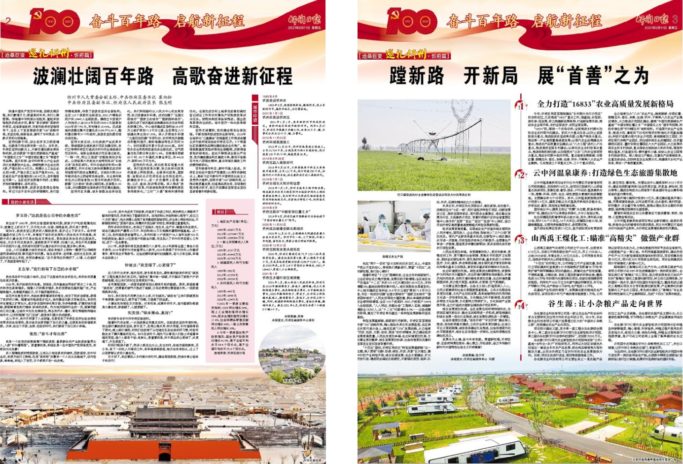 欣逢中國(guó)共產(chǎn)黨百年華誕,回顧光輝歷程,我們豪情萬(wàn)丈;展望美好未來(lái),我們心潮澎湃。伴隨著中華民族從站起來(lái)、富起來(lái)到強(qiáng)起來(lái)的前進(jìn)步伐,素有“晉北鎖鑰”美稱的忻府區(qū),在省委省政府、市委市政府的堅(jiān)強(qiáng)領(lǐng)導(dǎo)下,全區(qū)上下緊緊圍繞市委“336”戰(zhàn)略布局,攻堅(jiān)克難,砥礪奮進(jìn),譜寫(xiě)了與時(shí)俱進(jìn)、日新月異的壯麗篇章。