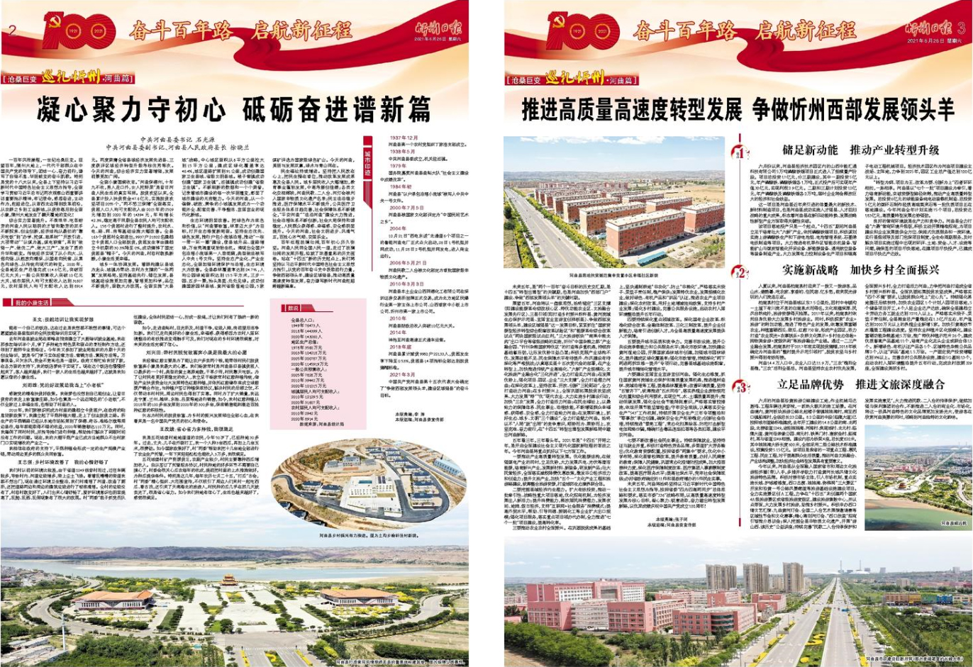 百年征程波瀾壯闊,百年初心歷久彌堅。河曲人民同全國人民一道,走過了波瀾壯闊的發(fā)展歷程,繪就了濃墨重彩的歷史畫卷。站在“十四五”新的歷史起點上,我們將堅持以習近平新時代中國特色社會主義思想為指引,從黨的百年奮斗史中汲取前行力量,爭做西部領頭羊,建設區(qū)域強縣,推動高質量高速度轉型發(fā)展,奮力譜寫新時代河曲趕超跨越新篇章。