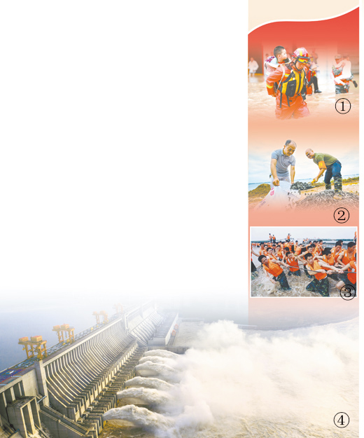 圖①:2020年6月,重慶涪陵區(qū)龍?zhí)舵?zhèn)遭遇暴雨,消防等救援力量營(yíng)救被困人員。肖樂峰攝(人民視覺) 圖②:2019年7月,鄱陽湖水位全面超警,干部群眾在江西都昌縣南溪圩堤,全力加固堤壩。傅建斌攝(人民視覺) 圖③:1998年8月,黑龍江大慶市遭受嫩江、松花江洪水,人民解放軍奮戰(zhàn)在抗洪搶險(xiǎn)一線。小 燕攝(人民視覺) 圖④:2020年8月,長(zhǎng)江2020年第4號(hào)洪水形成,三峽水利樞紐攔洪削峰。鄭 坤攝(人民視覺) 廣大干部群眾和人民解放軍、武警官兵堅(jiān)決響應(yīng)黨和政府號(hào)召,發(fā)揚(yáng)不怕累苦、不怕疲勞、不怕犧牲的精神斗志,堅(jiān)守在防汛抗洪救災(zāi)第一線,涌現(xiàn)了許多先進(jìn)典型和感人事跡,展現(xiàn)了中國(guó)人民眾志成城、頑強(qiáng)拼搏、敢于勝利的英雄氣概,書寫了洪水無情人有情的人間大愛。 ——習(xí)近平總書記2020年8月在安徽考察時(shí)強(qiáng)調(diào) “共產(chǎn)黨員跟我上!”“洪水不退人不退!” 1998年夏天,氣候異常,暴雨頻發(fā),長(zhǎng)江出現(xiàn)全流域性大水,東北嫩江、松花江也暴發(fā)特大洪水。千鈞一發(fā)之際,在黨中央堅(jiān)強(qiáng)領(lǐng)導(dǎo)下,全黨、全軍和全國(guó)人民緊急行動(dòng),廣大黨員干部群眾同解放軍指戰(zhàn)員、武警官兵一起,團(tuán)結(jié)奮戰(zhàn),力挽狂瀾,同洪水進(jìn)行了驚心動(dòng)魄的殊死搏斗。在這場(chǎng)偉大的抗洪搶險(xiǎn)斗爭(zhēng)中,形成了“萬眾一心、眾志成城,不怕困難、頑強(qiáng)拼搏,堅(jiān)韌不拔、敢于勝利”的偉大抗洪精神,成為中國(guó)人民彌足珍貴的精神財(cái)富。 大江奔涌,抗洪精神接續(xù)傳承。黨的十八大以來,在以習(xí)近平同志為核心的黨中央堅(jiān)強(qiáng)領(lǐng)導(dǎo)下,我們成功應(yīng)對(duì)了長(zhǎng)江、嫩江、松花江、黑龍江等流域大洪水,保障了人民群眾生命安全、大中城市和重要基礎(chǔ)設(shè)施防洪安全,為經(jīng)濟(jì)社會(huì)平穩(wěn)有序發(fā)展提供了堅(jiān)實(shí)支撐。 習(xí)近平總書記指出:“廣大干部群眾和人民解放軍、武警官兵堅(jiān)決響應(yīng)黨和政府號(hào)召,發(fā)揚(yáng)不怕累苦、不怕疲勞、不怕犧牲的精神斗志,堅(jiān)守在防汛抗洪救災(zāi)第一線,涌現(xiàn)了許多先進(jìn)典型和感人事跡,展現(xiàn)了中國(guó)人民眾志成城、頑強(qiáng)拼搏、敢于勝利的英雄氣概,書寫了洪水無情人有情的人間大愛?!?/p> 不怕困難、頑強(qiáng)拼搏,共產(chǎn)黨員這個(gè)共同的名字在驚濤駭浪中叫響 1998年8月,江西九江市新港鎮(zhèn)江磯村遭遇洪水。 管涌、滲水、滑坡。時(shí)任江磯村黨支部書記陳申桃一次次跳入水中,夯土石、搏風(fēng)浪、堵潰口,排除大小險(xiǎn)情100多處——“水不退,不離堤。” 2020年夏天,江磯村再遇洪災(zāi)。危急時(shí)刻,陳申桃的兒子、防汛抗洪黨員突擊隊(duì)成員陳建挑起重?fù)?dān),加入搶險(xiǎn)隊(duì)伍,和父親并肩護(hù)堤——“有險(xiǎn)情,咱就在?!?/p> 一個(gè)個(gè)緊要關(guān)頭,一代代共產(chǎn)黨員挺身而出??购榫裨谝淮未谓影矠憽傩瞻簿又绣N煉鑄就。 這是不畏艱險(xiǎn)、沖鋒陷陣的拼搏精神。 “黨員跟我上!”1998年7月,江西鄱陽縣磨刀石鄉(xiāng),洪水沖破圩堤,時(shí)任北關(guān)村黨支部書記胡義和帶著大家跳入水中,用身軀壓住沙袋,筑起一道堅(jiān)固的防洪墻。 像胡義和一樣,九八抗洪期間,長(zhǎng)江沿線上堤搶險(xiǎn)的干部群眾高峰時(shí)達(dá)670多萬人,縣級(jí)以上領(lǐng)導(dǎo)干部1.5萬多人。2016年抵御長(zhǎng)江流域洪水,湖北、湖南、江西、安徽、江蘇等地廣大干部群眾齊上陣,累計(jì)投入抗洪搶險(xiǎn)人員1749萬人次。 一次次洪水肆虐,總有黨員干部帶領(lǐng)群眾,不顧安危,不舍晝夜,用身軀抵擋滾滾濁浪,用生命守護(hù)堤防安全。 這是守土有責(zé)、履職盡責(zé)的擔(dān)當(dāng)精神。 “守大堤就是守生命線?!苯骶沤胁裆^(qū)江洲鎮(zhèn)黨委書記陳世超說,江洲鎮(zhèn)四面環(huán)江,每逢汛期,黨員干部全體到崗,全力巡堤。全鎮(zhèn)設(shè)立171座防汛哨所,安排專班24小時(shí)巡堤,確保萬無一失。 “有散浸,快來人!”2016年7月的一個(gè)深夜,湖北嘉魚縣渡普鎮(zhèn),正在東湖堤防上值守的葛慶彪聽到呼喊,迅速趕往現(xiàn)場(chǎng),和村民們一起填碎石、壓彩條布,奮戰(zhàn)一整夜,成功化解險(xiǎn)情。每到汛期葛慶彪總會(huì)堅(jiān)守大堤。 每年汛前,國(guó)家防總都組織通報(bào)全國(guó)各省防汛抗旱防臺(tái)風(fēng)的行政責(zé)任人和大江大河重點(diǎn)工程的行政責(zé)任人,督促落實(shí)防汛責(zé)任。從大江大河,到重點(diǎn)水利工程、重點(diǎn)防洪城市,再到中小河流,責(zé)任層層壓實(shí),防汛抗洪一線,各級(jí)黨員干部巡堤、值守,扛起重任。 這是百折不撓、敢于勝利的奮斗精神。 “一定要堵上口子!”1998年7月底,在湖南岳陽市云溪區(qū)陸城鎮(zhèn)新港村,長(zhǎng)江大堤外坡發(fā)生坍塌,時(shí)任村黨支部書記戴勝生一聲令下,黨員干部紛紛跳進(jìn)急流,激戰(zhàn)洪水。 “趕快清理閘門!”今年7月,臺(tái)風(fēng)“煙花”登陸后,江蘇江都水利工程管理處青年黨員突擊隊(duì)隊(duì)員王德俊、呂鵬在巡查中發(fā)現(xiàn)險(xiǎn)情,頂著疾風(fēng)驟雨