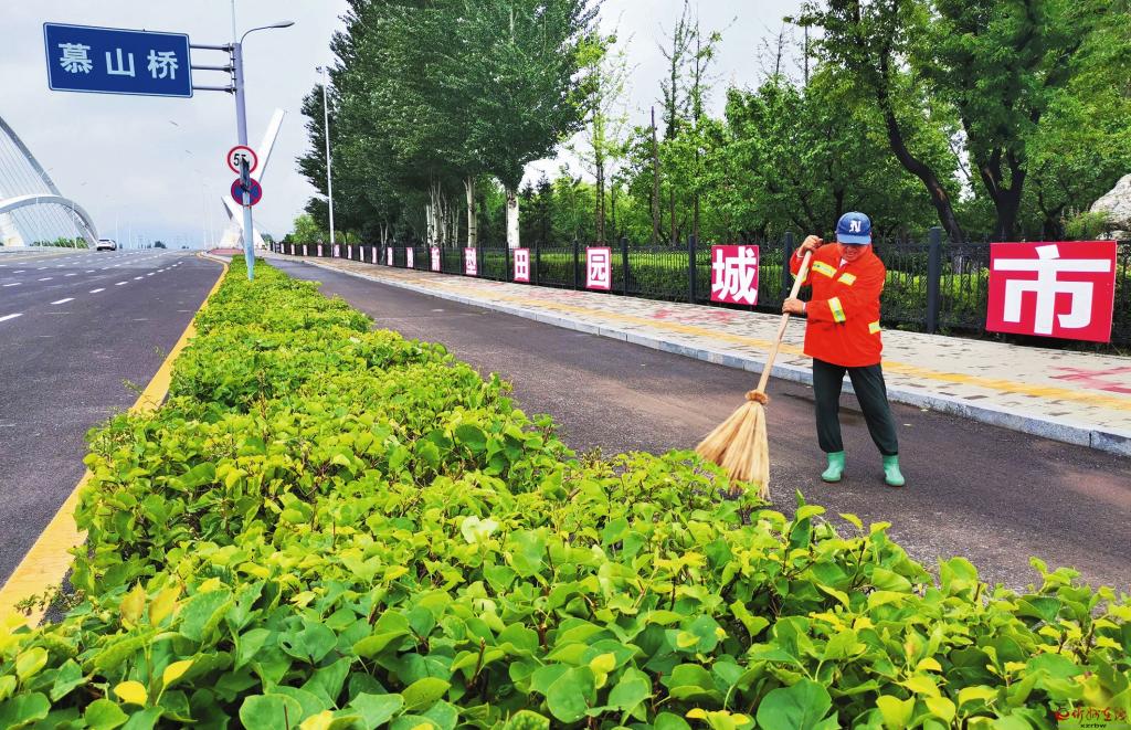 7月12日,云中河風(fēng)景區(qū)保潔員正在清掃路面。昨日的連續(xù)強(qiáng)降雨天氣,使個(gè)別路段除了落葉,新增泥濘。環(huán)衛(wèi)工人一早清掃,保景區(qū)環(huán)境整潔。(宮清華 攝)